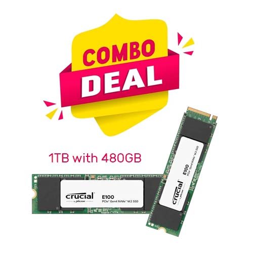 Home » Shop » Crucial E100 1TB with 480GB Gen4 M.2 NVMe Internal SSD Combo
