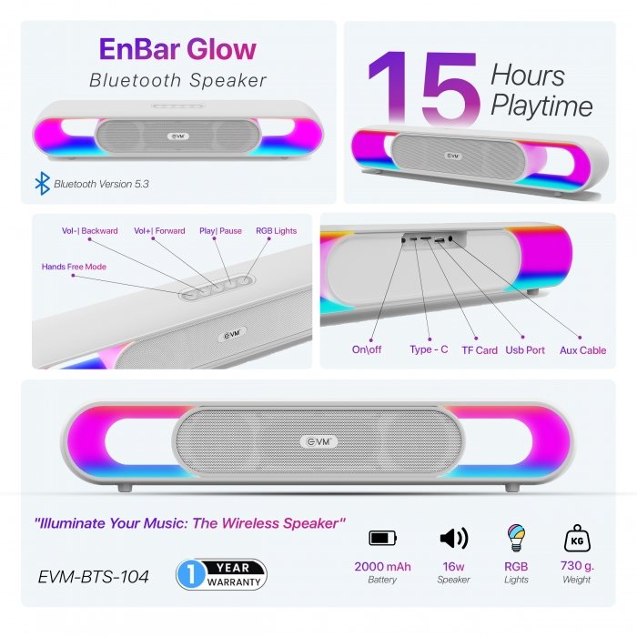 EVM EnBar Glow Bluetooth Speaker EVM-BTS104-W