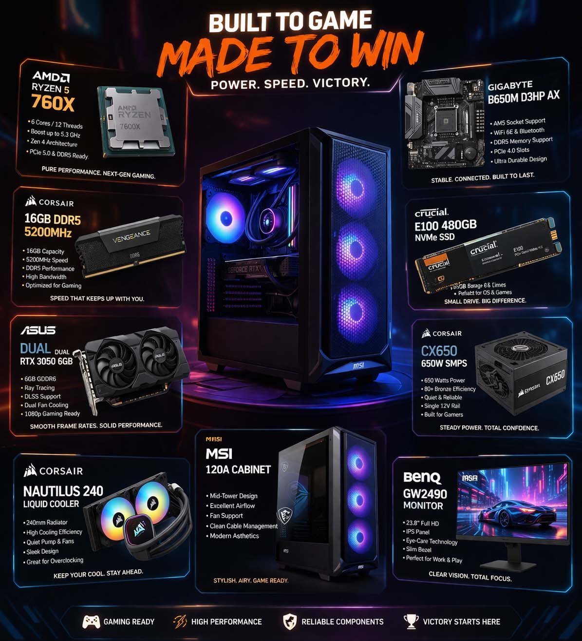 - Processor: AMD Ryzen 5 7600X (6 Cores, 12 Threads, up to 5.3GHz)