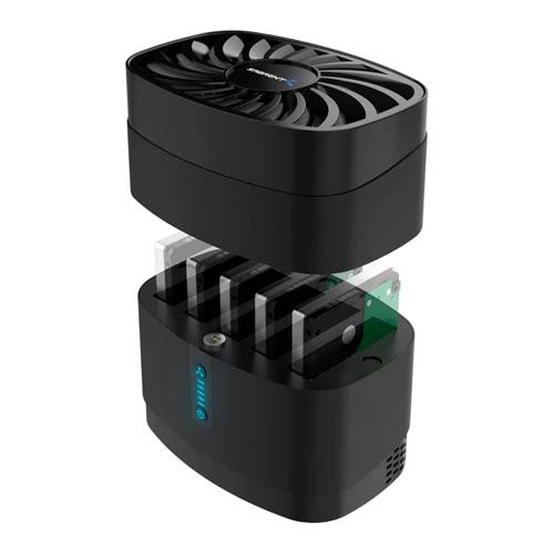 The built-in 80mm fan keeps temperatures down so your drives don’t overheat, and can be turned off with the front button to keep the volume down. You can even switch the fan out for another compatible 80mm fan down the line to improve the lifespan of the docking station. LED indicators on the front allow you to see the status of each of your five drives and the fan. This docking station is compatible with Windows, macOS, and Linux PCs.